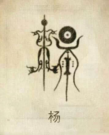 杨姓图腾,是远古三苗之一柯挪耶劳的族称,为现代杨姓苗支,他的祖先是兵主蚩尤。“杨”是太阳的意思,由“木”和“易”组成。“木”在这里特指扶桑,在《山海经》等中国古籍中记载:扶桑树生长在东方大海上的汤谷(初在今连云港云合山)。汤谷又称作“阳谷”、“温源谷”。易、阳、羊、杨、扬、汤、蜴、蜥远古时为同义词!可以相互替代,所以“易”是“日升汤谷”的形象描写。居住在汤谷帅氏族古代传说采用扶桑纪历。