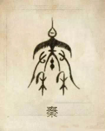 秦姓图腾,秦是秦族的族称。它由“玄鸟殒卵”、“双手供奉”和“禾苗”三部分组成。它是“燕子殒卵”与嘉禾的复合图腾,秦人的祖先是有虫乔女女华,她吞燕卵生伯益,伯益为秦人男性祖先。其女性祖先为有虫乔氏女女华。 始祖:伯益