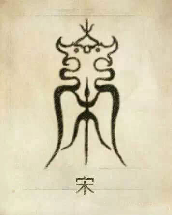 宋姓图腾,宋姓是以祖先发明图腾命名族称的典型。其祖先发明并继承建木晷天。宋由“宀”和木组成。木代表建木,“宀”上的点代表“天齐”,“冖”代表天穹,表示晷天历度。始祖微子启,以国得姓。由于宋姓之先为商,商又因是玄鸟所生,故图腾上方两侧为象形玄鸟。始祖微子启,以国得姓。“坐龙椅”之人,皇族。