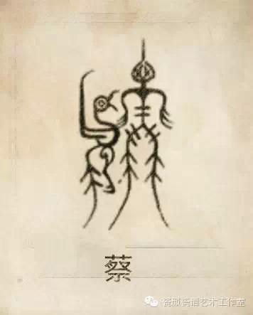 蔡姓图腾,蔡姓是炎帝氏中的以长尾鸟为图腾的氏族的族称。因为这种鸟好杀好斗,直到斗死才肯罢休,在甲骨文中作“杀”解,这种长尾鸟是山雉。这个字后来又衍化为“刈”。蔡图腾由两个鸟的图形组成,右面的鸟是蔡的本字,左面的鸟代表炎帝的丹凤,即山雉。蔡姓也是具有司天权的氏族,同样也是炎帝族的别称。周公封文王孙胡于蔡,称蔡钟(一作仲),子孙以国为姓